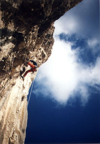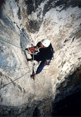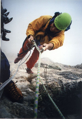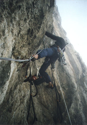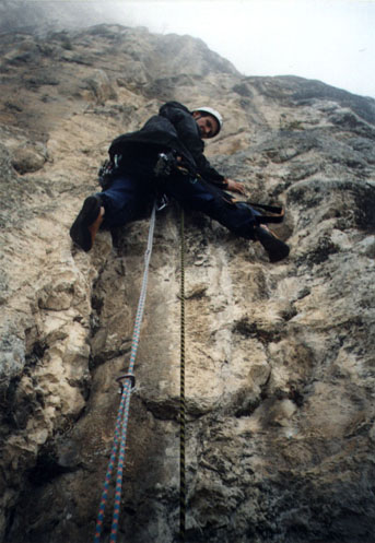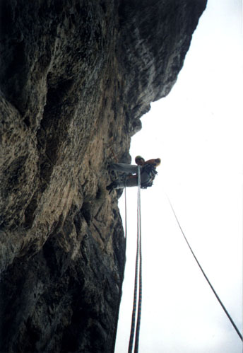 Я, този парапет бил здрав! Първите две въжета катерим всеки път на свръзка. До последното достигнато място от преди се изпомпваме с жумари.