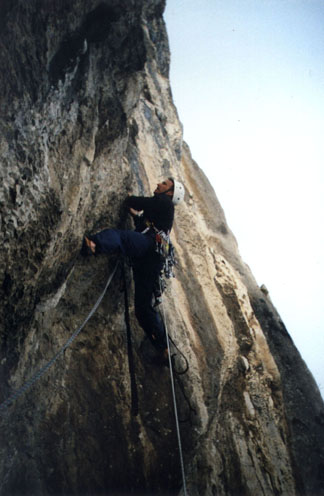 Малко над това място София заби първия клин (началото на трето въже, над траверса).