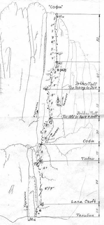 Централна стена на Враца, "Sophi”, 9 (8, A2) UIAA,