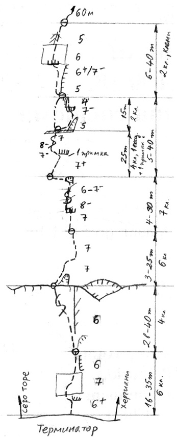 Централна стена на Враца, "Терминатор”, 8- (7+ задължително) UIAA